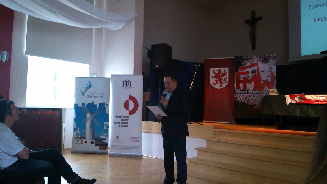Spotkanie otworzył wicemarszałek Województwa Zachodniopomorskiego Wojciech Drożdż - Lekarstwem na polską beznadzieję drugiej połowy lat 80. byli ludzie młodzi, tacy, jak wy teraz. Dla nich było oczywiste, że trzeba działać, inaczej ideały, o których mówiła Solidarność, pójdą w zapomnienie. Dla wielu takie myślenie w czasach, gdy w Polsce stacjonowała Armia Radziecka, a socjalizm wydawał się systemem, który przetrwa jeszcze wiele lat, wydawał się utopią. Ale historia pokazała, że warto mierzyć wysoko, ryzykować i ufać, że jeśli mocno w coś wierzymy, to cel zostanie osiągnięty. Takiej wiary życzę wam także dziś, gdy Polska jest wolna. I życzę wam wewnętrznej wolności - takiej, jaką mieli członkowie Federacji Młodzieży Walczącej. Z tej lekcji zapamiętajcie, że bunt zawsze ma sens, gdy upominamy się o wartości takie, jak wolność i prawo do godnego życia. Nigdy nie dajcie ich sobie odebrać – mówił wicemarszałek