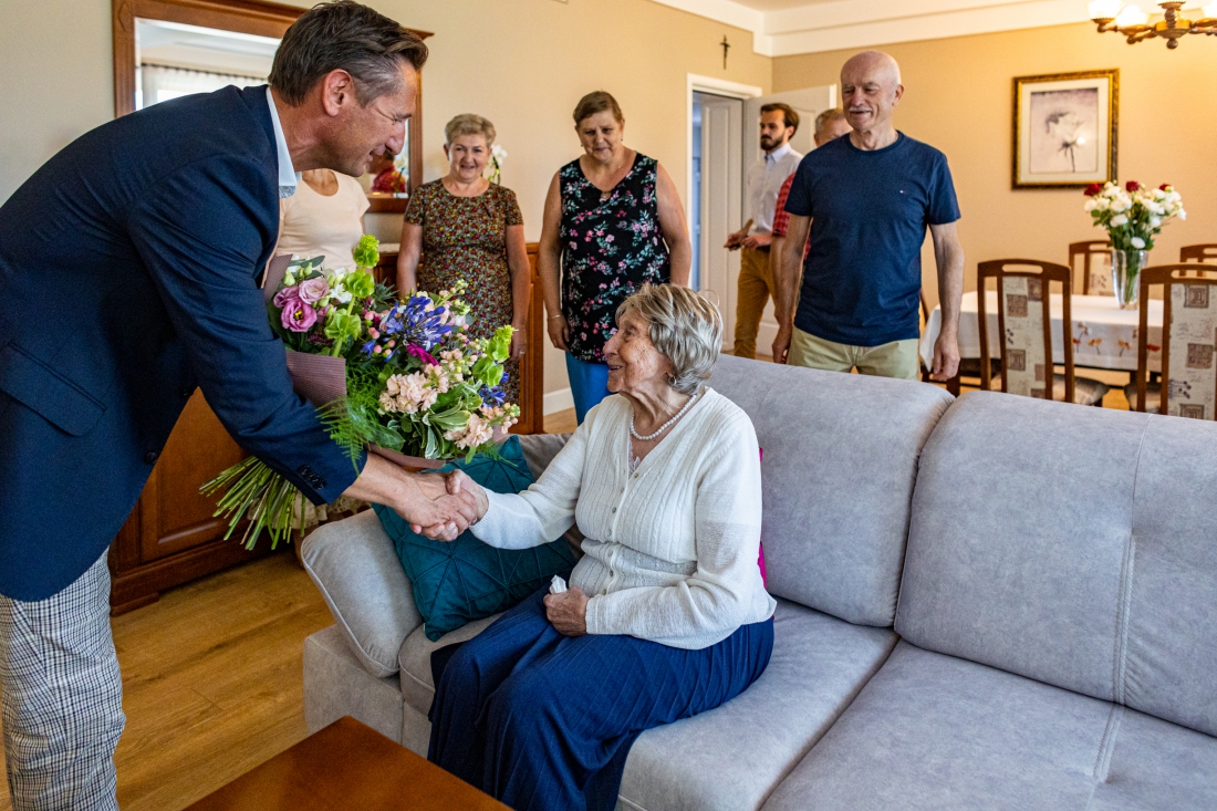 – To wspaniały jubileusz, wzruszający moment i niezapomniana chwila. Z okazji setnych urodzin życzę naszej jubilatce wszystkiego, co najlepsze. Niech każdy kolejny dzień dostarcza Pani dużo spokoju i pomyślności, niech dopisuje zdrowie oraz omijają problemy – mówił podczas spotkania marszałek województwa Olgierd Geblewicz.