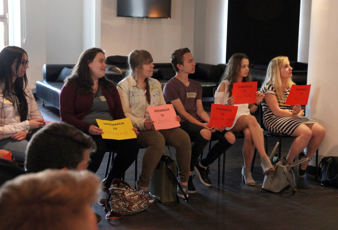 Spotkanie rozpoczęło się od warsztatów, które poprowadziła Marta Szulc, doktor nauk społecznych i prezes fundacji Socia Evoluo. Młodzież próbowała nadać znaczenie słowom takim jak wolność i prawa obywatelskie, które często są dla nich tylko zwykłymi regułkami.