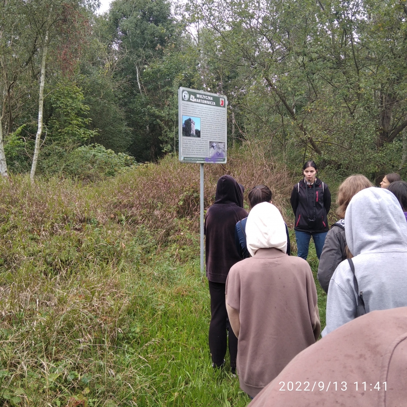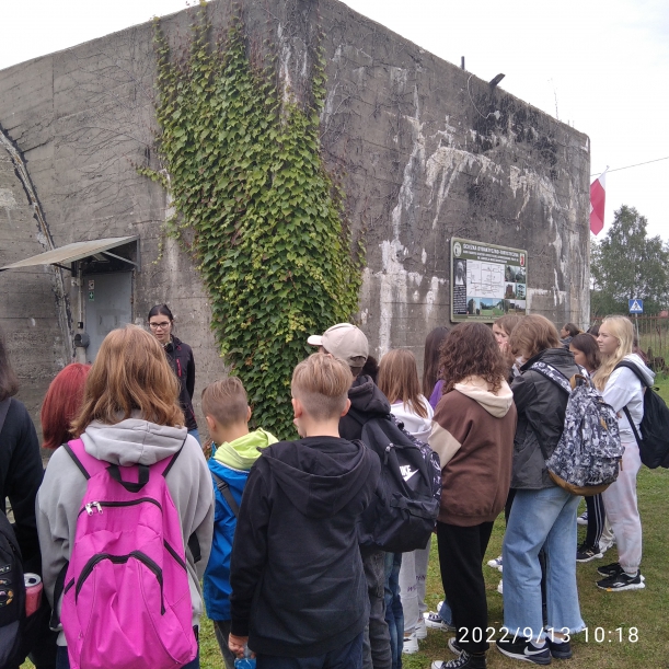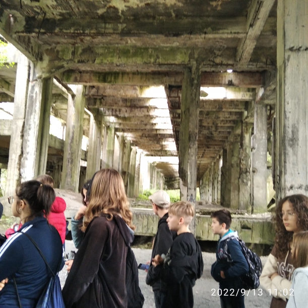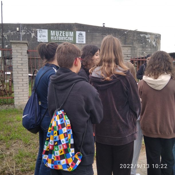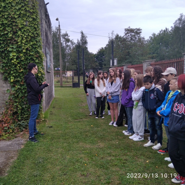 Lekcja wyjazdowa rozpoczęła się o godzinie 10-ej, wyjazdem sprzed budynku szkoły. Na miejscu, przed wejściem do byłego schronu, dziś muzeum, oraz siedziby stowarzyszenia, powitała młodzież Magdalena Olejniczak – przewodnik, animator. Podała cele zajęć, trasę wycieczki oraz regulamin poruszania się po terenie pozostałości po obiekcie – niemieckiej fabryce benzyny syntetycznej. Uczestnicy zostali wprowadzeni w tematykę II wojny światowej, rozwoju techniki wojennej oraz genezy powstania fabryki. Następnie udali się w trasę, wyznaczoną przez Stowarzyszenie Przyjaciół Ziemi Polickiej, ścieżką turystyczno-dydaktyczną. Obejrzeli obiekty całkowicie zniszczone, zarówno podczas alianckich nalotów, jak i wysadzonych po zakończeniu wojny, np. 100-metrowy komin fabryczny. Duże zainteresowanie uczniów wzbudził imponujący rozmiarami dawny elewator węglowy o litych żelbetowych ścianach w rudo-czerwonym kolorze. Tu mielono węgiel. Obok podziwiano szkielet budynku, w który destylowano „upłynniony” węgiel. Najwięcej emocji wywołały wejścia do podziemnych korytarzy, a zwłaszcza informacja o śladach pazurków pozostawionych przez zimujące tu, objęte ochroną, nietoperze. Podczas aktywnego zwiedzania z oprowadzaniem młodzież zapoznano z rolą przemysłu paliwowego, historią kombinatu, zwracając szczególną uwagę na pracę robotników przymusowych oraz więźniów. Część dydaktyczną zakończono w siedzibie Stowarzyszenia Przyjaciół Ziemi Polickiej SKARB. W poniemieckim schronie przeciwlotniczym, gdzie mieści się Muzeum Historyczne SKARB, uczniowie obejrzeli eksponaty związane z funkcjonowaniem fabryki benzyny syntetycznej. W całkowitej ciszy i skupieniu wysłuchali historii o ludziach, którym naziści nie odebrali człowieczeństwa.