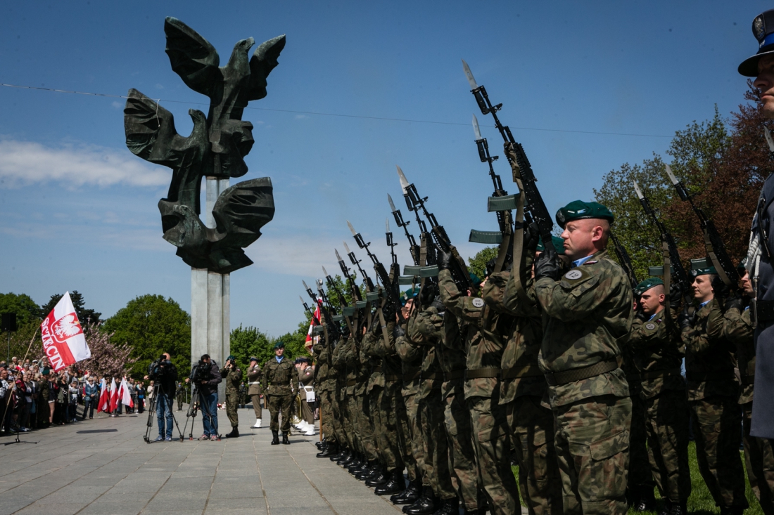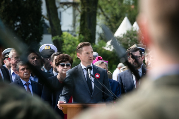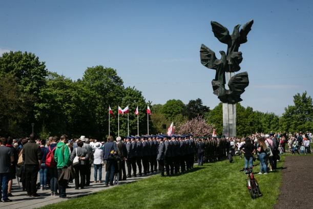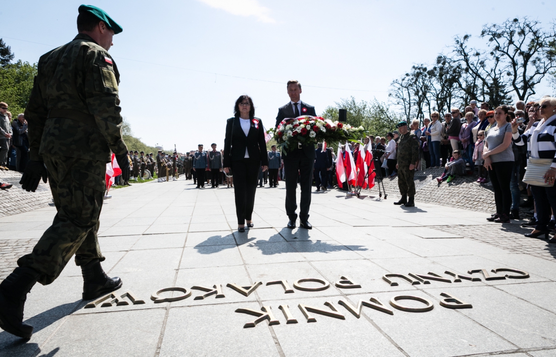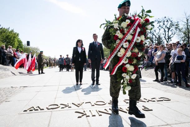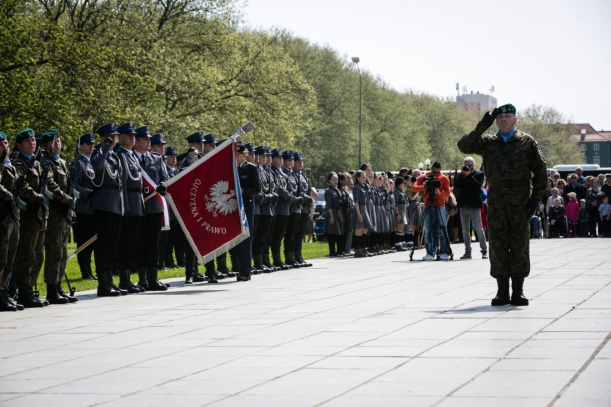 Dzień później, w tym samym miejscu celebrowaliśmy Wojewódzkie Obchody Święta Narodowego Trzeciego Maja. Zgodnie z tradycją złożono meldunek i odegrano hymn państwowy, nie zabrakło także przemówień okolicznościowych, apelu pamięci, złożenia kwiatów.