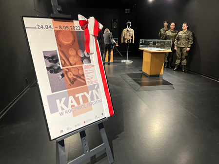 Ekspozycja przypomina jedną z najbardziej okrutnych zbrodni drugiej wojny światowej – zbrodnię katyńską. Prezentowane przedmioty wydobyte zostały z masowych grobów podczas ekshumacji prowadzonych w Katyniu, Miednoje i Charkowie na Piatichatkach. Pamiątki pochodzą ze zbiorów Stowarzyszenia „Katyń” oraz archiwum rodzinnego Andrzeja Milczanowskiego. Podczas wernisażu można było także obejrzeć dwa mundury polskich oficerów z czasów drugiej wojny światowej ze zbiorów Andrzeja Winczy.