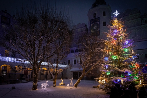 Po zmroku marszałek województwa Olgierd Geblewicz i dyrektor Zamku Barbara Igielska symbolicznie odpalili oświetlenie na choince na Zamku Książąt Pomorskich w Szczecinie. O świąteczny klimat zadbali młodzi artyści z chóru „Voci Veloci”, którzy wykonali m.in. tradycyjne polskie kolędy.