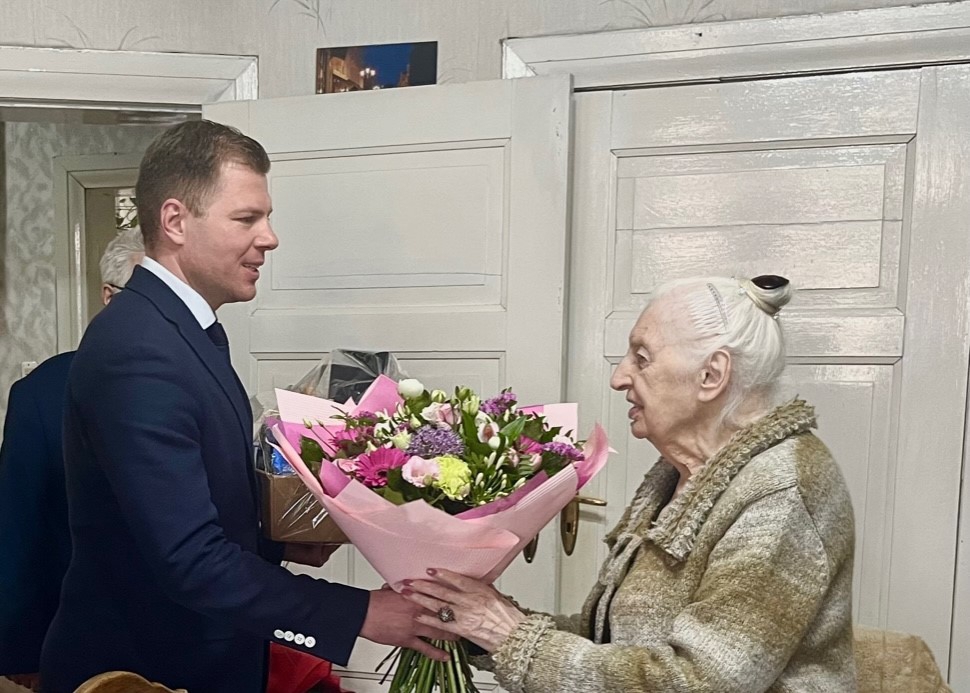 Z kwiatami, drobnymi prezentami i życzeniami od Marszałka Województwa Zachodniopomorskiego Olgierda Geblewicza panią Marię odwiedził zastępca dyrektora Gabinetu Marszałka Marcin Kordela. Spotkanie z panią Zofią nie było w tym dniu możliwe. Obu paniom życzymy długich lat życia, zdrowia i pomyślności.
