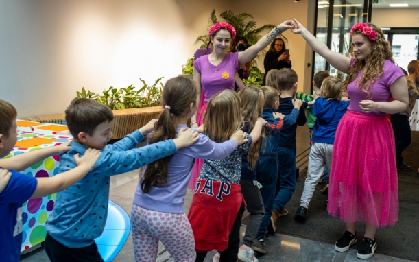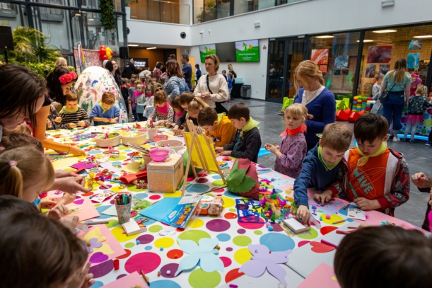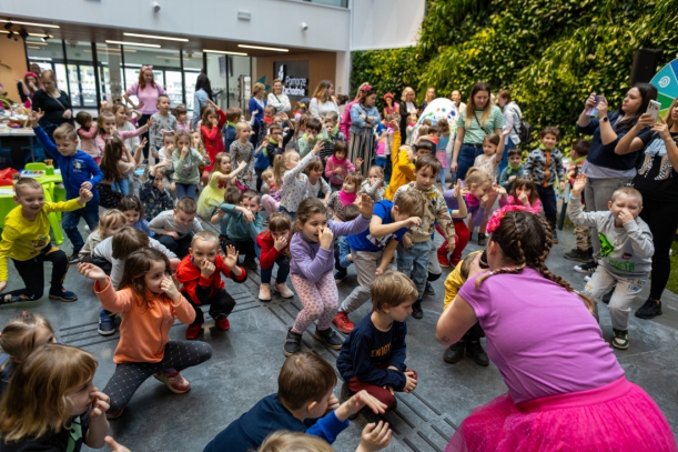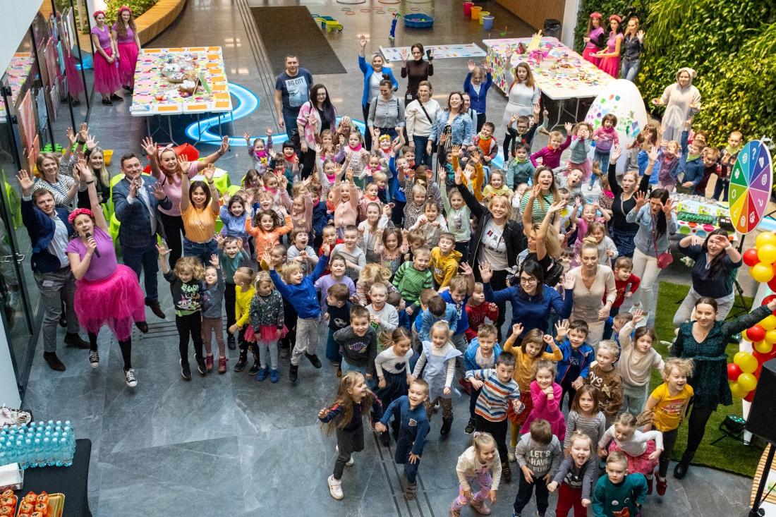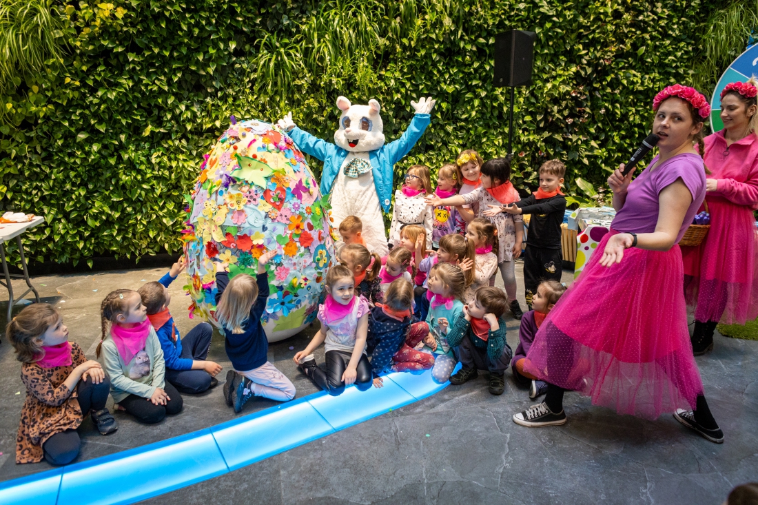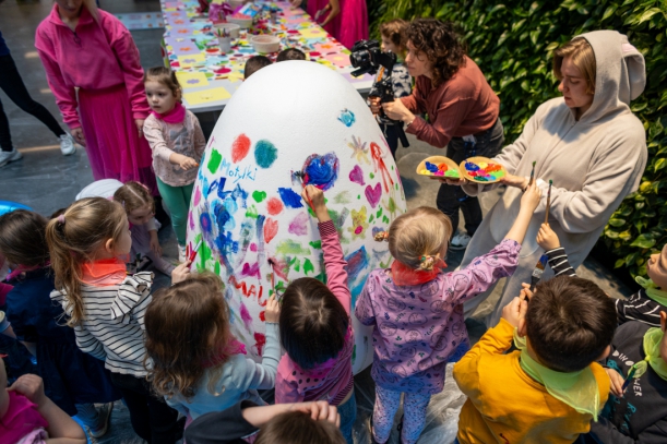 Rozpędzony, rozbawiony i kolorowy kursował po przestronnym atrium UMWZ w rytm muzyki. Stworzyło go 150 przedszkolaków z 3 szczecińskich placówek publicznych. Następnie maluchy podzielone na grupy brały udział w urozmaiconych zajęciach. Było malowanie styropianowych jajek, rysowanie, zdobienie olbrzymiej pisanki i koło fortuny z drobnymi upominkami. Na uczestników warsztatów czekał też słodki poczęstunek. Jedną z atrakcji była także wizyta Zajączka, a do zdjęć z nim ustawiały się długie kolejki.