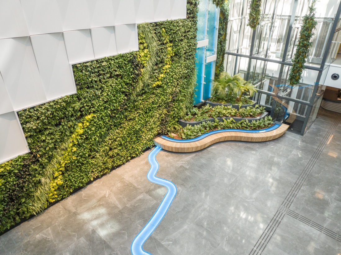 • Zdrowie i dobre samopoczucie: wewnętrzne i zewnętrzne czynniki wpływające na zdrowie i dobre samopoczucie pracowników (ilość światła dziennego w pomieszczeniach, temperatura i jakość powietrza, akustyka);